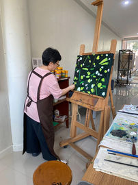 กระบวนการทำงานของเธอให้ความสำคัญกับคุณสมบัติทางกายภาพของสีและวัสดุ ผ่านการใช้ฝีแปรงที่มีพลังและการสร้างพื้นผิวของสีที่ซ้อนทับกัน ซึ่งก่อให้เกิดจังหวะ การเคลื่อนไหว และมิติของพื้นที่ภาพ